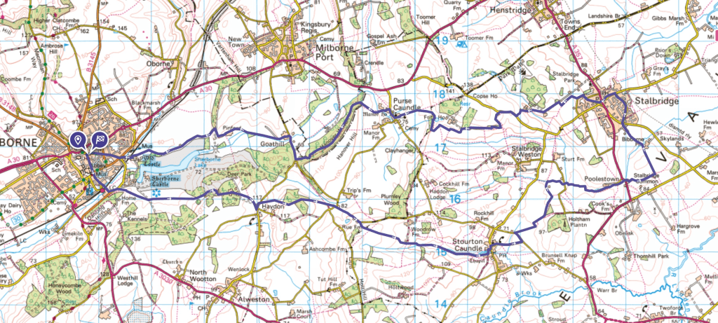 One of my old routes that I haven’t walked for a long time. Starting and finishing in Sherborne, it is an 18 mile circuit that takes in two castles and some lovely countryside on route to Stalbridge.