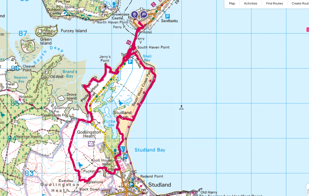 A 4 mile easy/moderate route around Studland, Ballard Down and Old Harry Rocks with one steep climb with the reward being some amazing views.